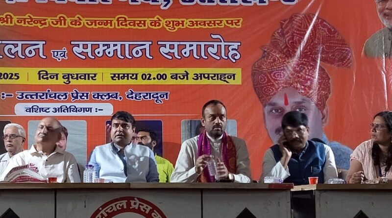 देहरादून। नरेंद्र मोदी विचार मंच की उत्तराखंड इकाई की ओर से बुधवार को प्रेस क्लब में प्रधानमंत्री नरेंद्र मोदी के जन्मदिन पर कवि सम्मेलन और सम्मान समारोह का आयोजन किया गया। कार्यक्रम के दौरान नरेंद्र मोदी विचार मंच की साहित्य इकाई के राष्ट्रीय अध्यक्ष श्रीकांत श्री और उत्तरांचल प्रेस क्लब के अध्यक्ष भूपेंद्र सिंह कंडारी को सम्मानित भी किया गया। मंच का संचालन प्रसिद्ध शायरा मीरा नवेली ने किया।